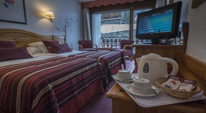 • Chaque chambre chauffée de l'Hôtel del Tarter est décorée